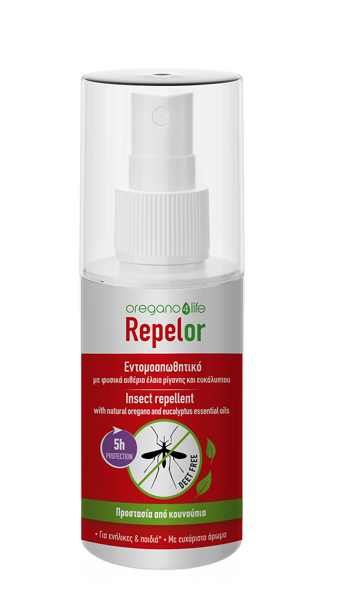 Το Repelor είναι φυσικό εντομοαπωθητικό µε μοναδική σύνθεση που αξιοποιεί τη δύναμη του αιθέριου ελαίου άγριας ελληνικής ρίγανης και του ευκάλυπτου.