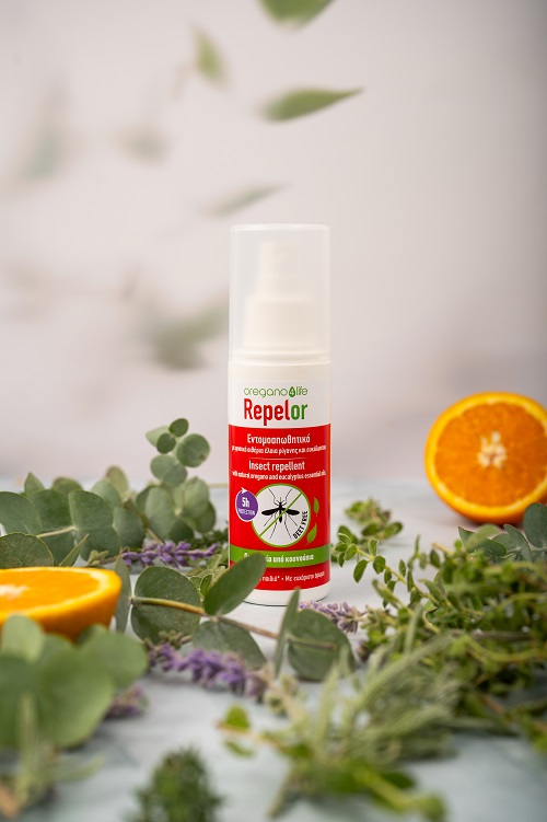 Το Repelor είναι φυσικό εντομοαπωθητικό με αιθέριο έλαιο άγριας ελληνικής βιολογικά καλλιεργούµενης ρίγανης (Οriganum vulgare spp. hirtum) και αιθέριο έλαιο ευκάλυπτου. Προσφέρει φυσική προστασία από τα κουνούπια έως και 5 ώρες από την εφαρμογή του. Έχει ευχάριστο άρωμα και είναι κατάλληλο για ενήλικες και παιδιά από 3 ετών. To Repelor είναι απαλλαγμένο από το νευροτοξικό συστατικό DEET, ένα από τα πλέον χρησιμοποιούμενα συστατικά των κοινών εντομοαπωθητικών.